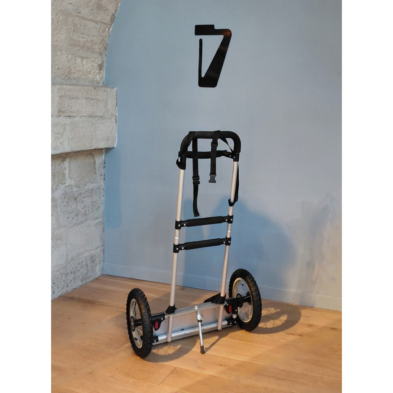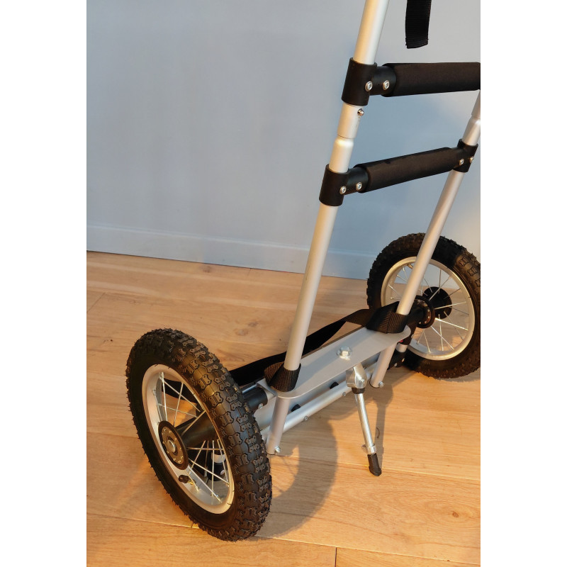 Chariot pour harpe avec roues gonflables et démontables, léger et très stable.