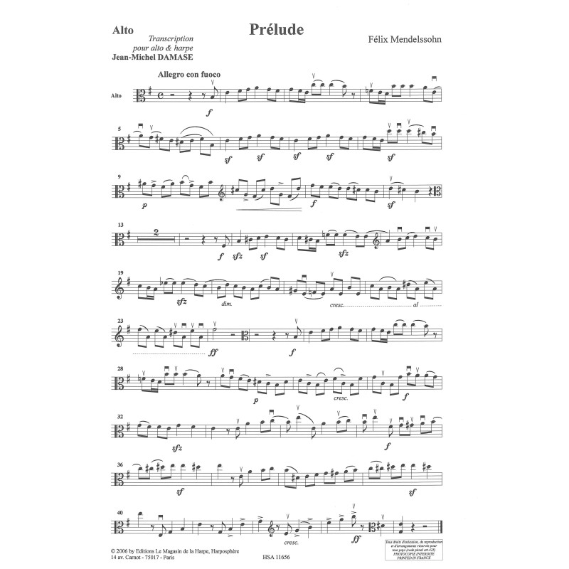 Mendelssohn Felix - Prélude (Damase Jean-Michel)