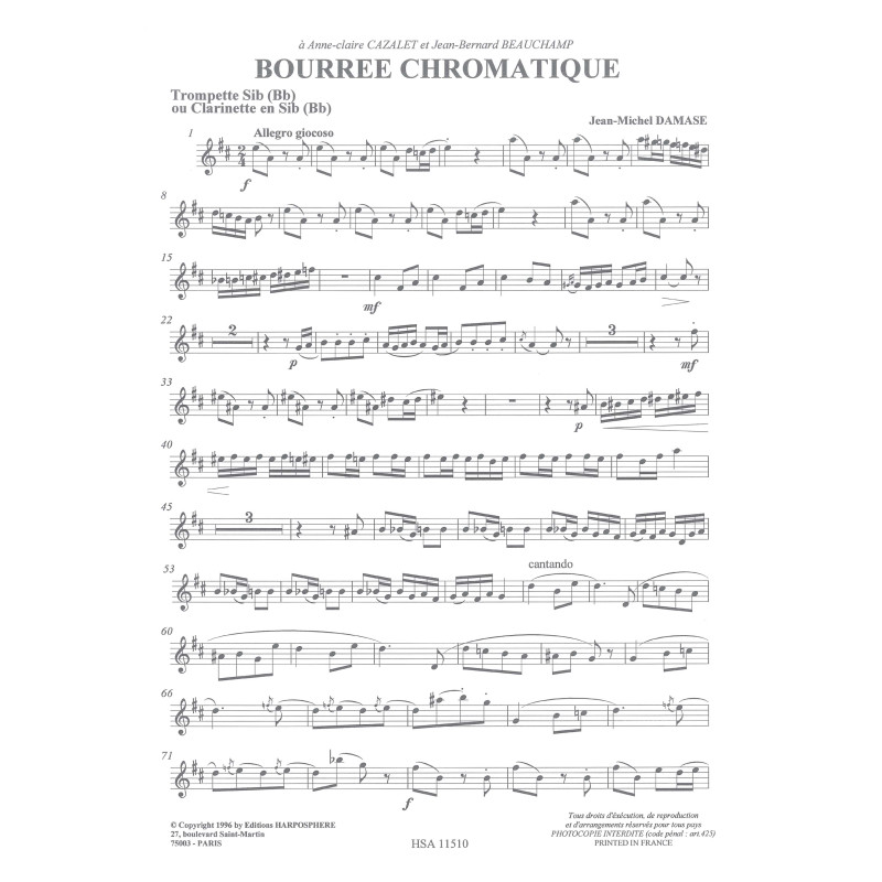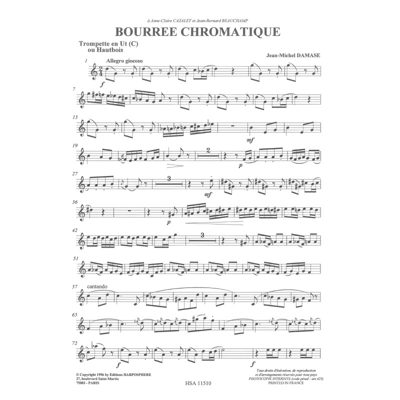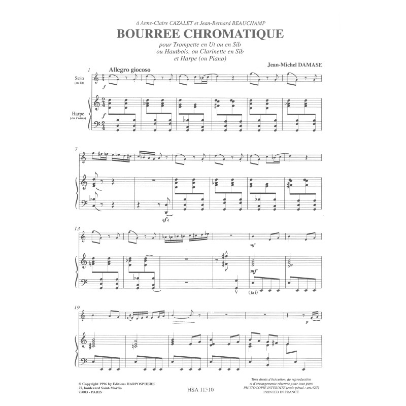 Formation : Pour clarinette (ou hautbois ou trompette) et harpe