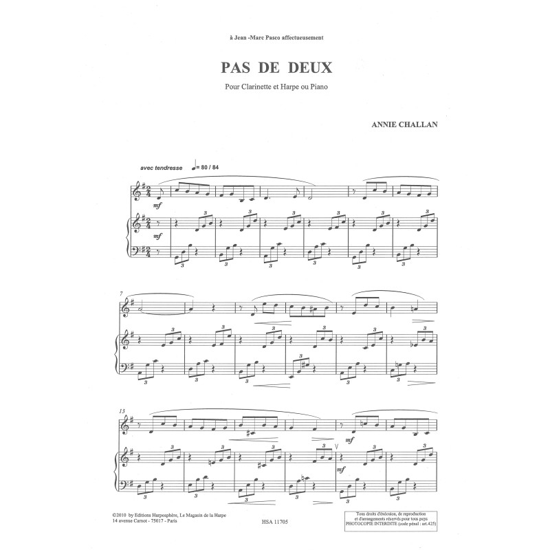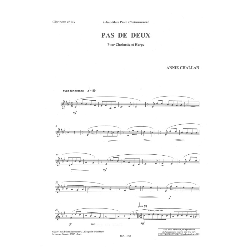 Formation : Pour clarinette et harpe (ou piano)
