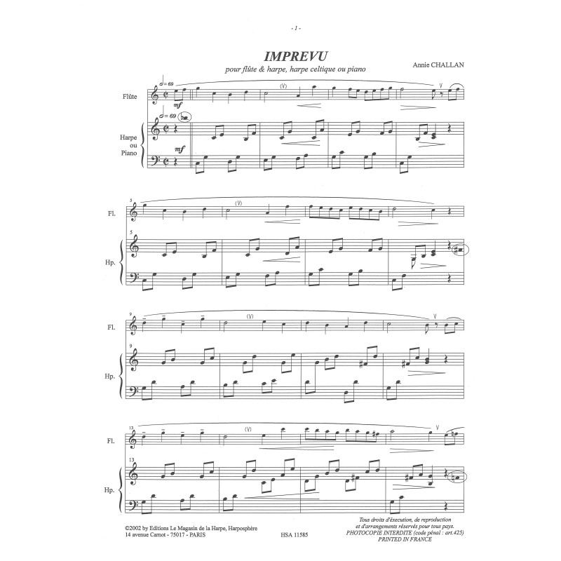 Formation : Pour flûte et harpe (pour harpe à pédales ou harpe à leviers ou piano)