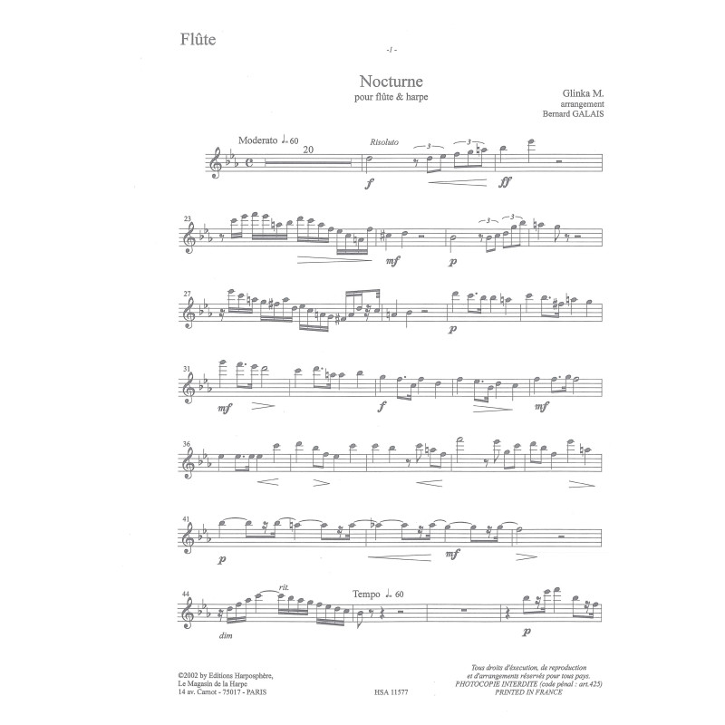 Glinka Mikhaïl Ivanovitch - Nocturne (Galais Bernard)
