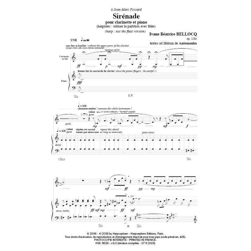 Formation : Pour flûte et harpe ou clarinette et harpe (ou piano)