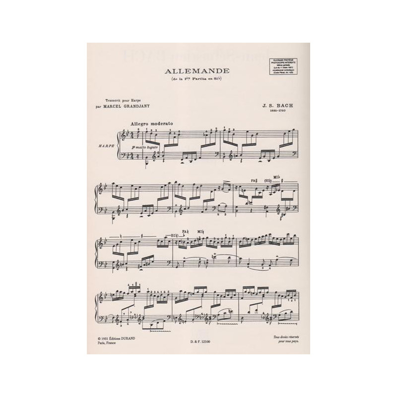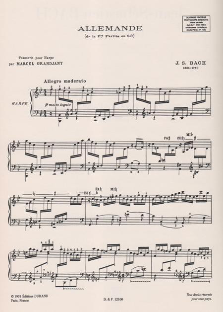 Bach Johann Sebastian - Allemande de la première Partita en si b (Grandjany Marcel)