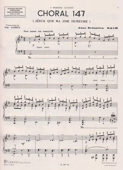 Bach Johann Sebastian - Choral de la cantate BWV 147 (Lasson Guy)