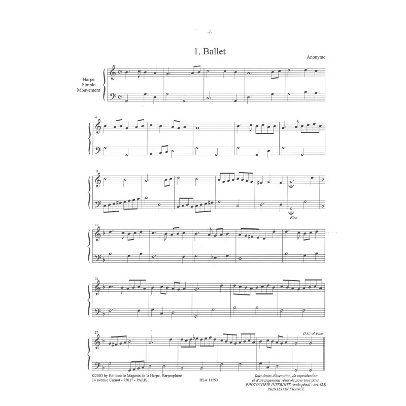 Formation : Pour harpe seule et pour harpe et guitare (pour harpe à pédales ou harpe à leviers)