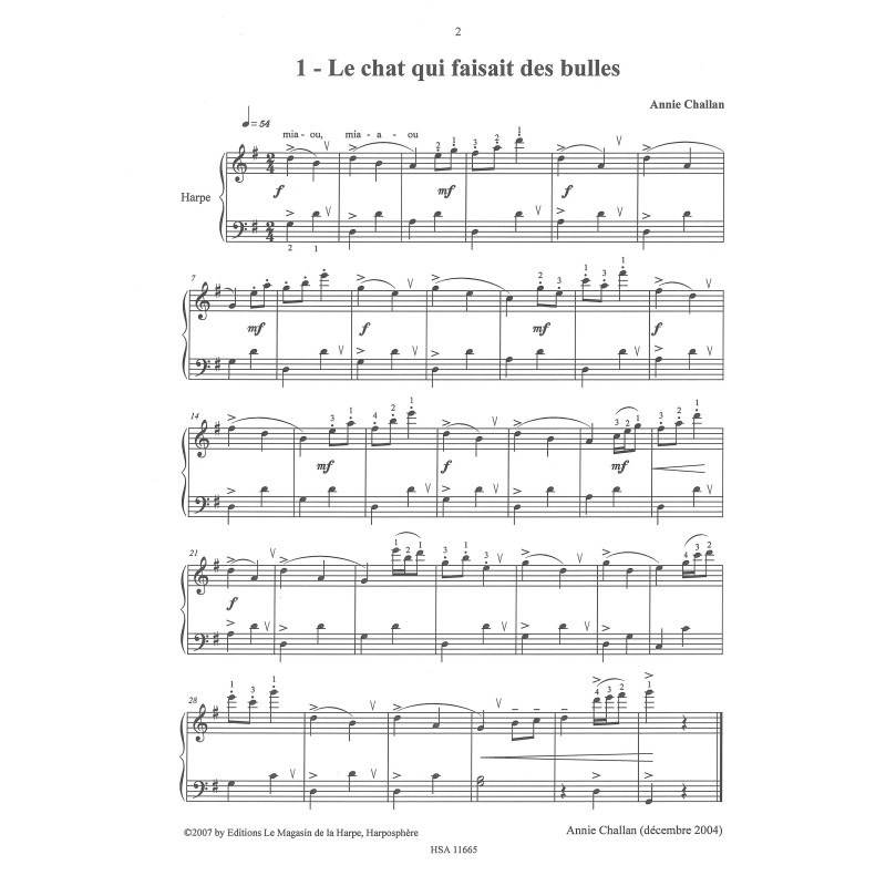J'ai composé ces pièces afin de développer chez les jeunes harpistes le sens du phrasé et du légato, sans lesquels, bien sur, il ne peut y avoir de vraie Musique.
