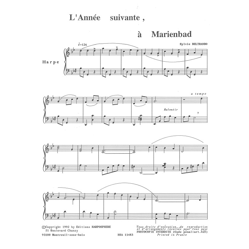 Formation : Pour harpe seule (pour harpe à leviers)
