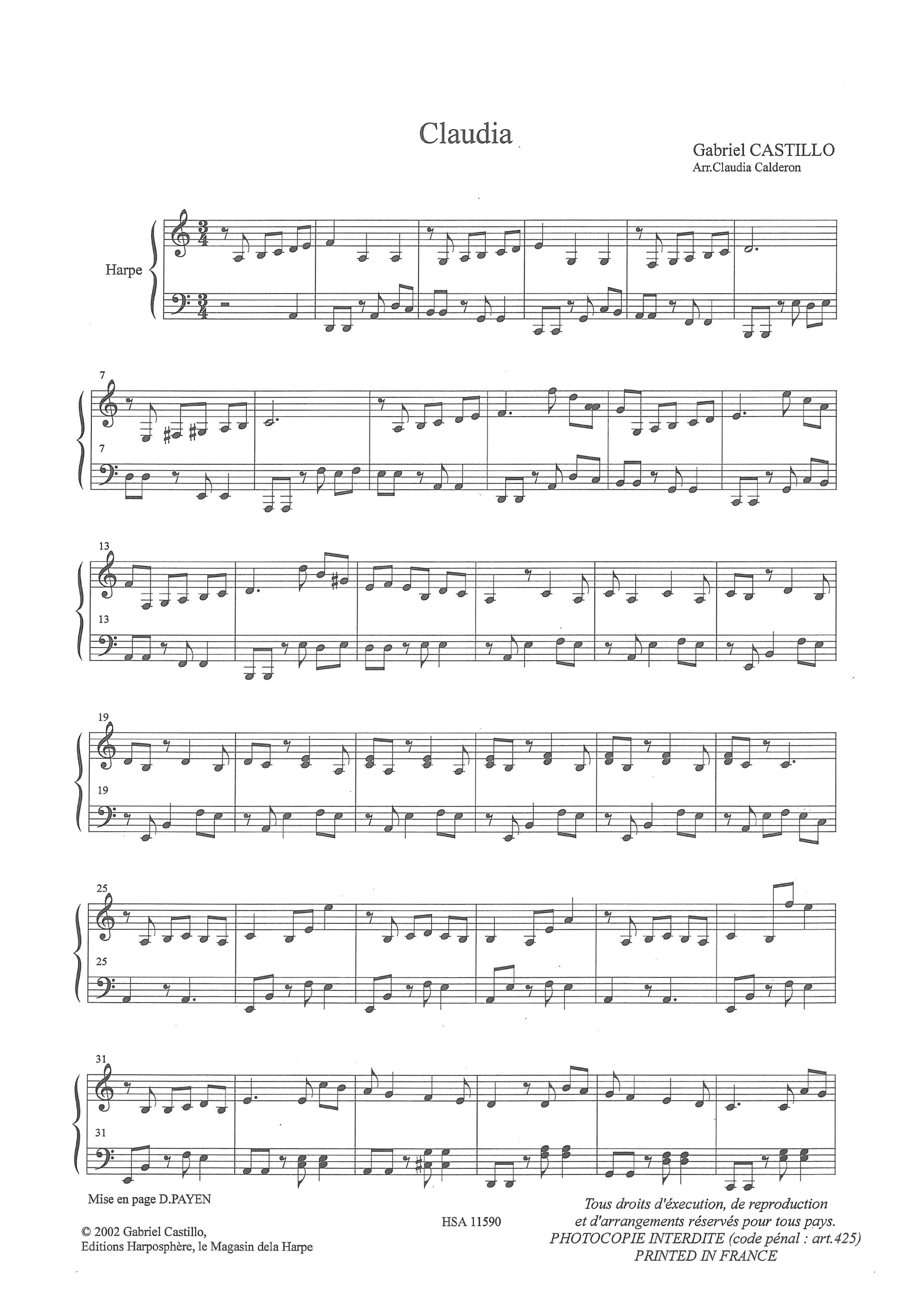 Formation : Pour harpe seule (pour harpe à pédales ou harpe à leviers)