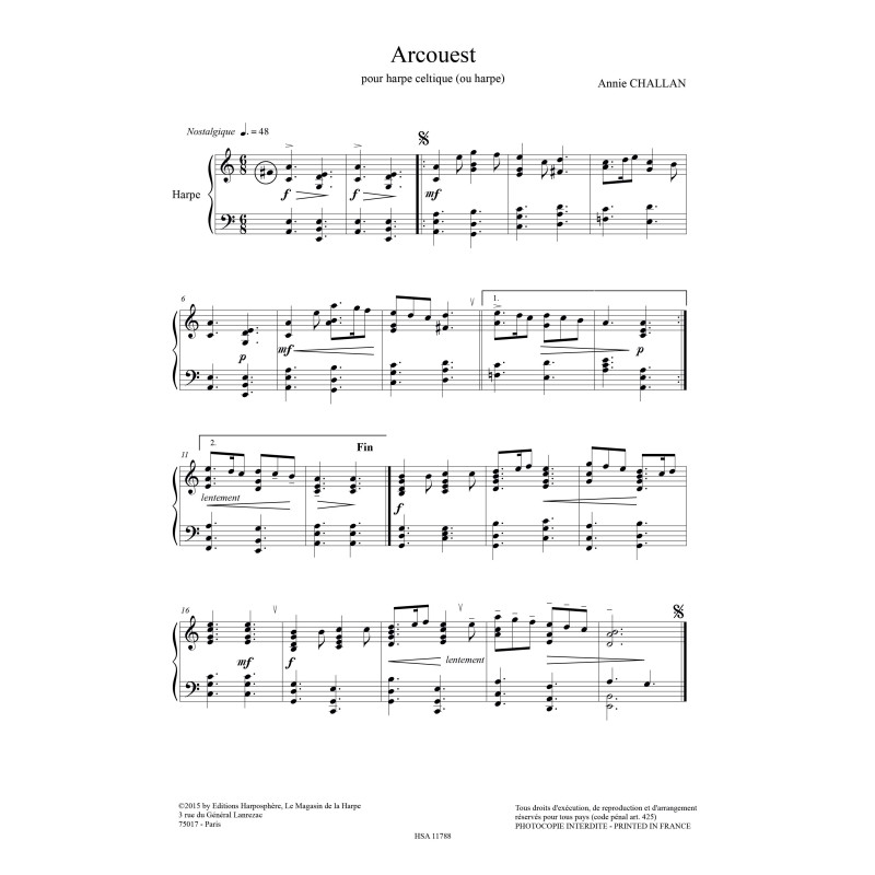 Formation : Pour harpe seule (pour harpe à pédales ou harpe à leviers)