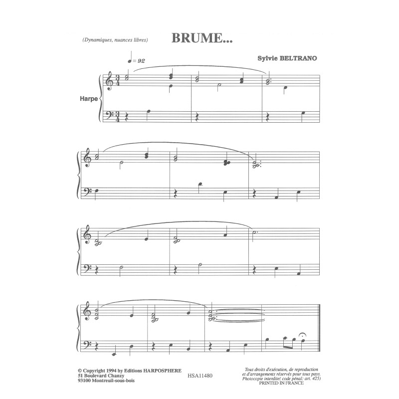 Formation ; Pour harpe seule (pour harpe à leviers)
