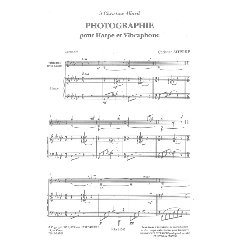 Formation : Pour harpe et vibraphone