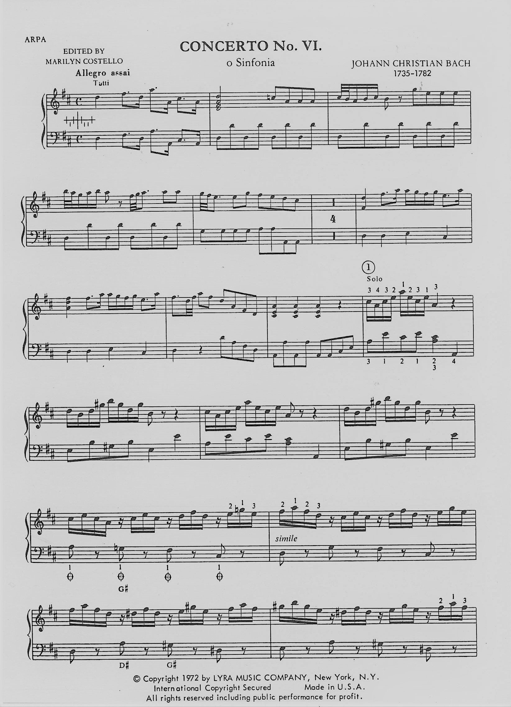 Bach Johann Chrétien - Six concerti - concerto numero 6