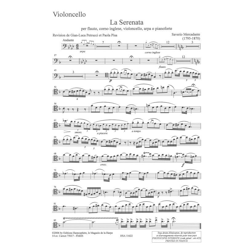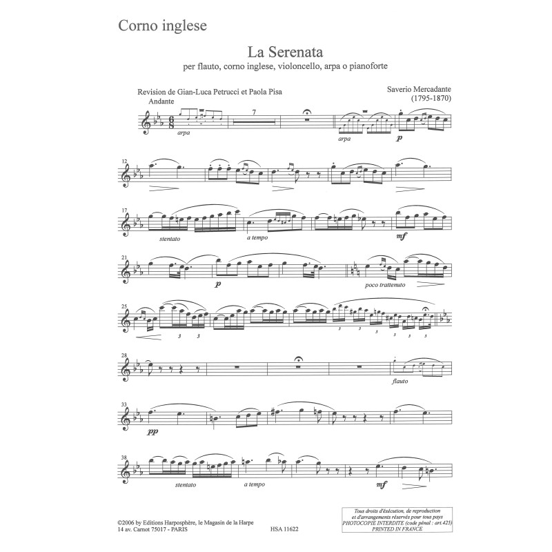 Formation : Pour flûte, cor, violoncelle et harpe (ou piano)