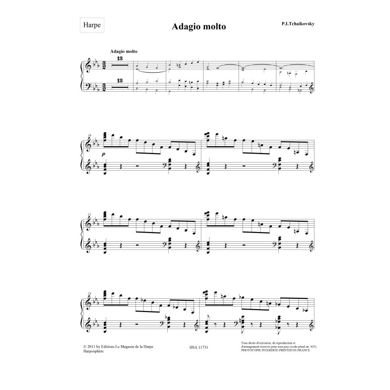 Tchaïkovsky Piotr Ilitch - Adagio Molto en mib majeur TH 158