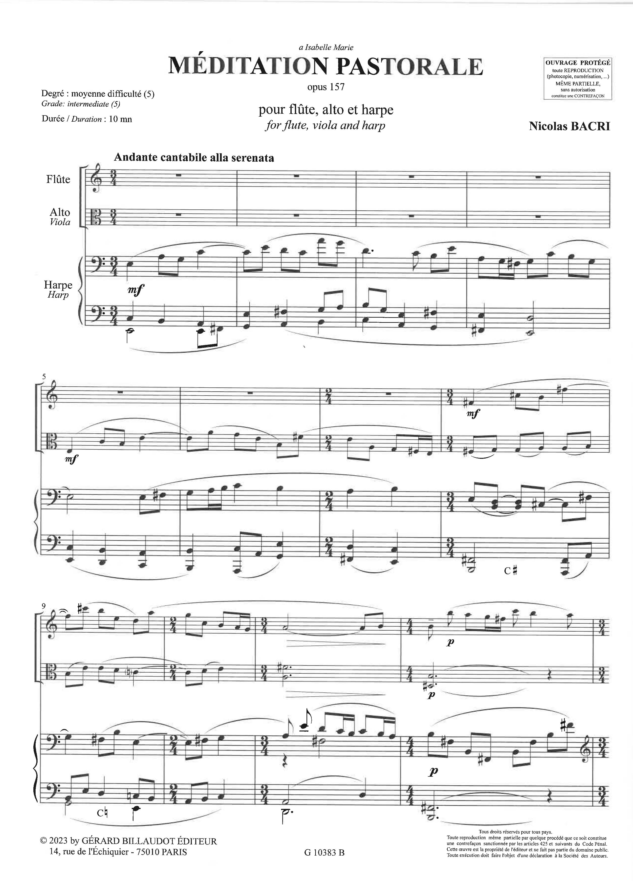 Bacri Nicolas - Méditation pastorale Op. 157