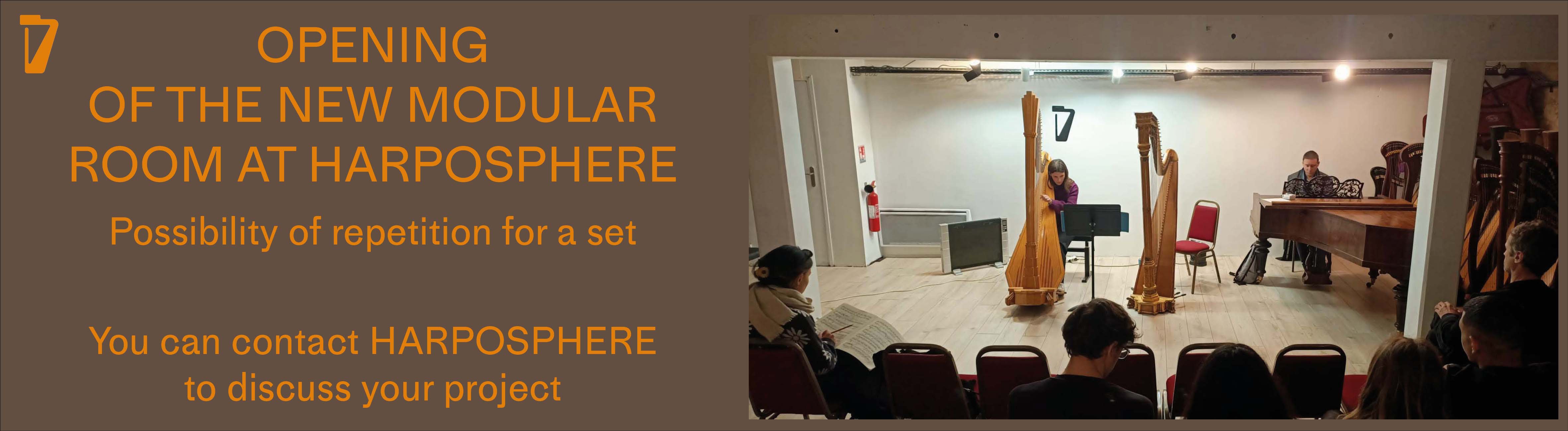 Sale of harps, strings, sheet music, and accessories; repair workshop, publishing, harp lessons, event programming (concerts, masterclasses, etc.), and rehearsal studios.