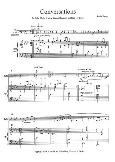 Formation : pour violoncelle et harpe (ou pour tuba ou basson ou contrebasse et harpe ou piano)