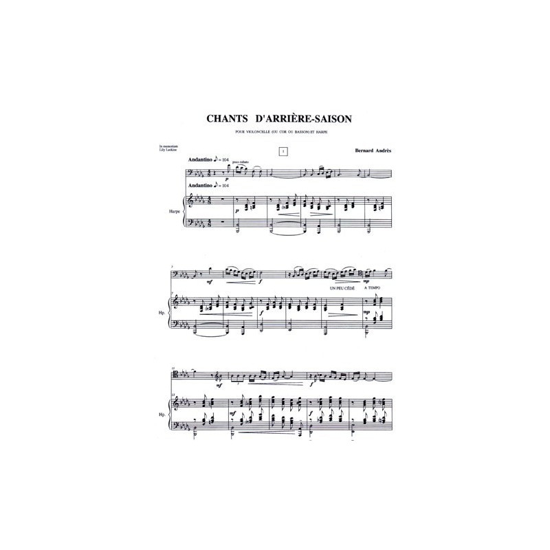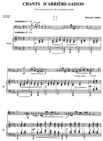 Formation : Pour violoncelle et harpe (ou cor ou basson)