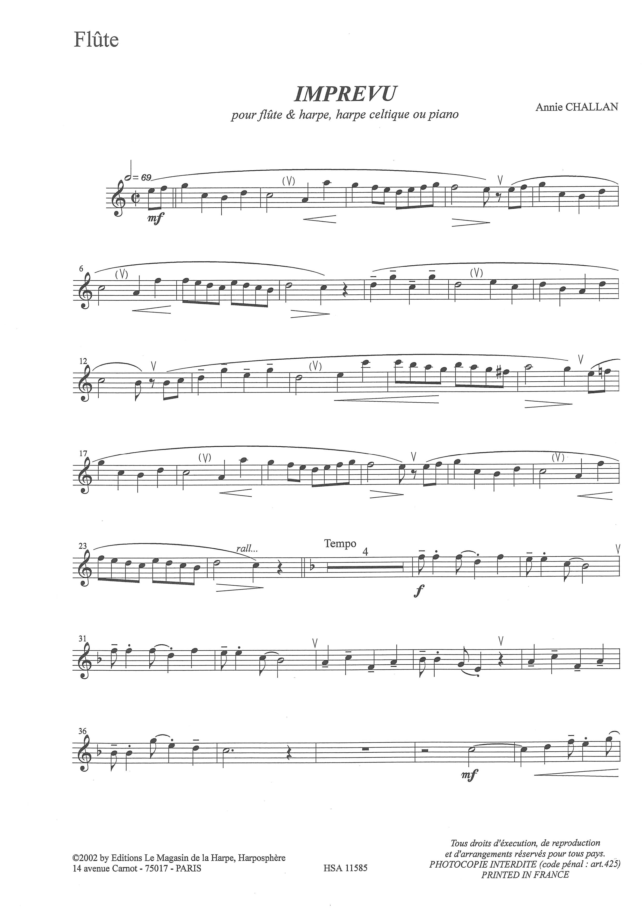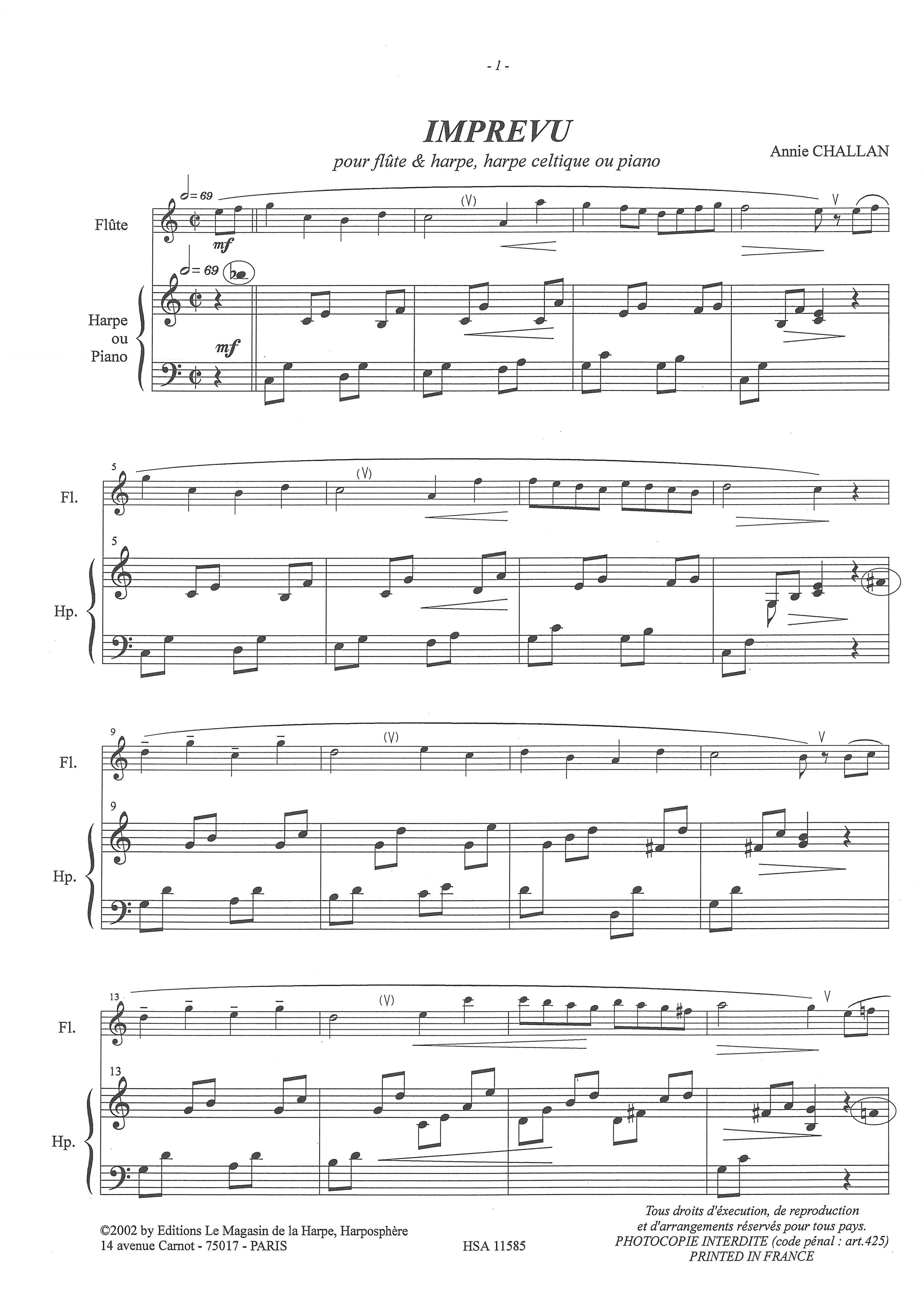 Formation : Pour flûte et harpe (pour harpe à pédales ou harpe à leviers ou piano)