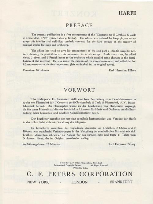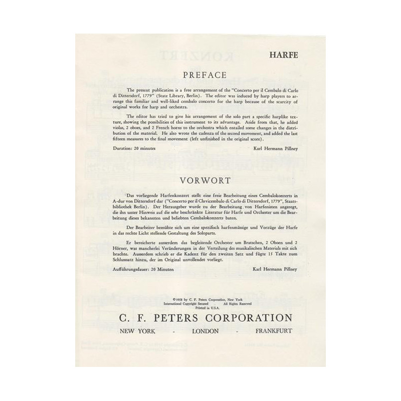 Dittersdorf Karl Diters - Concerto (partie harpe)