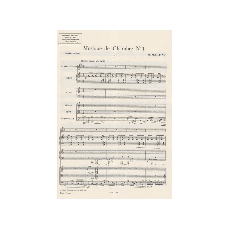 Martinu Bohuslav - Musique de chambre numero 1 (conducteur de poche)