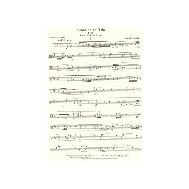 Ravel Maurice - Sonatine en trio, partie alto (Salzedo Carlos)