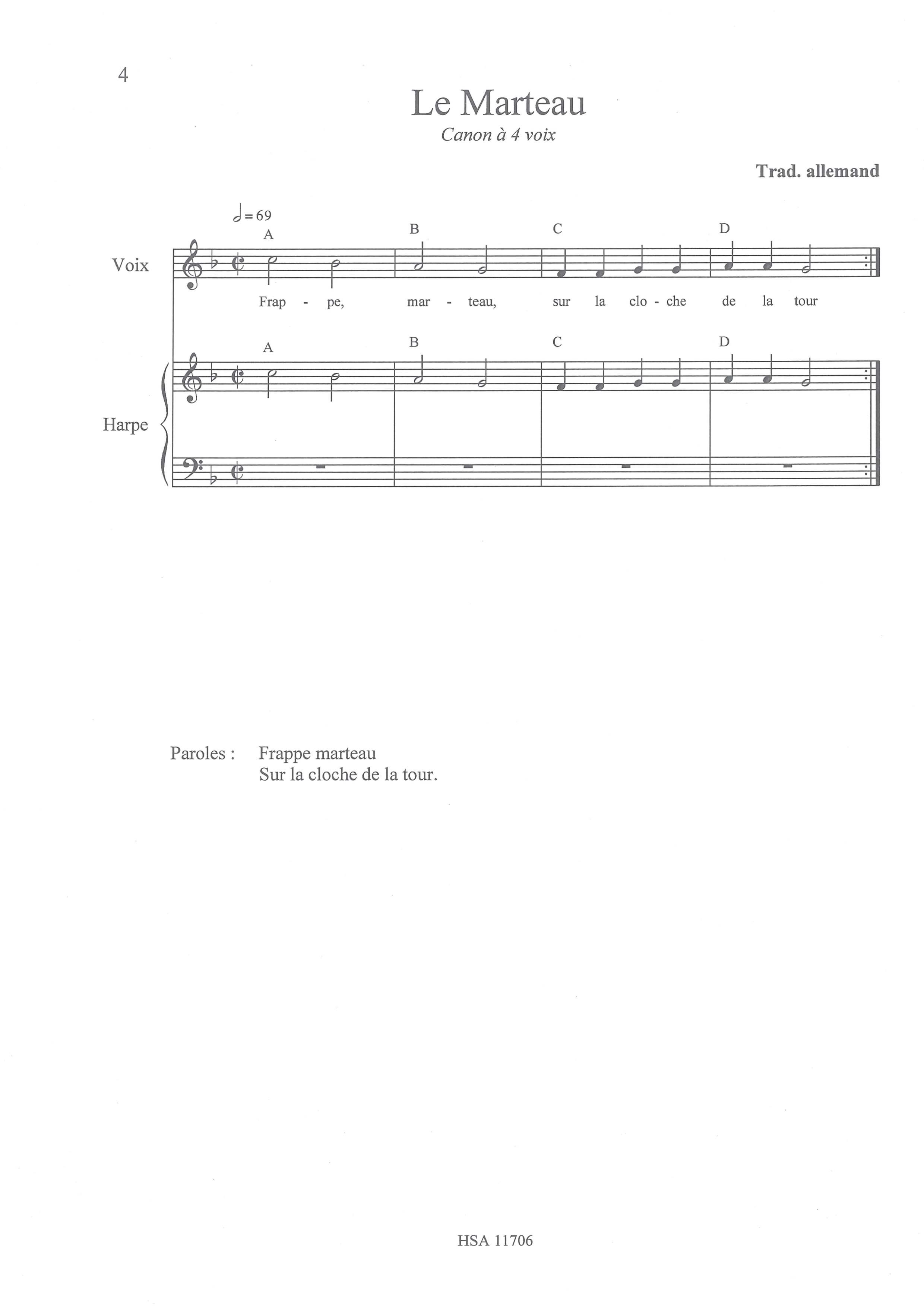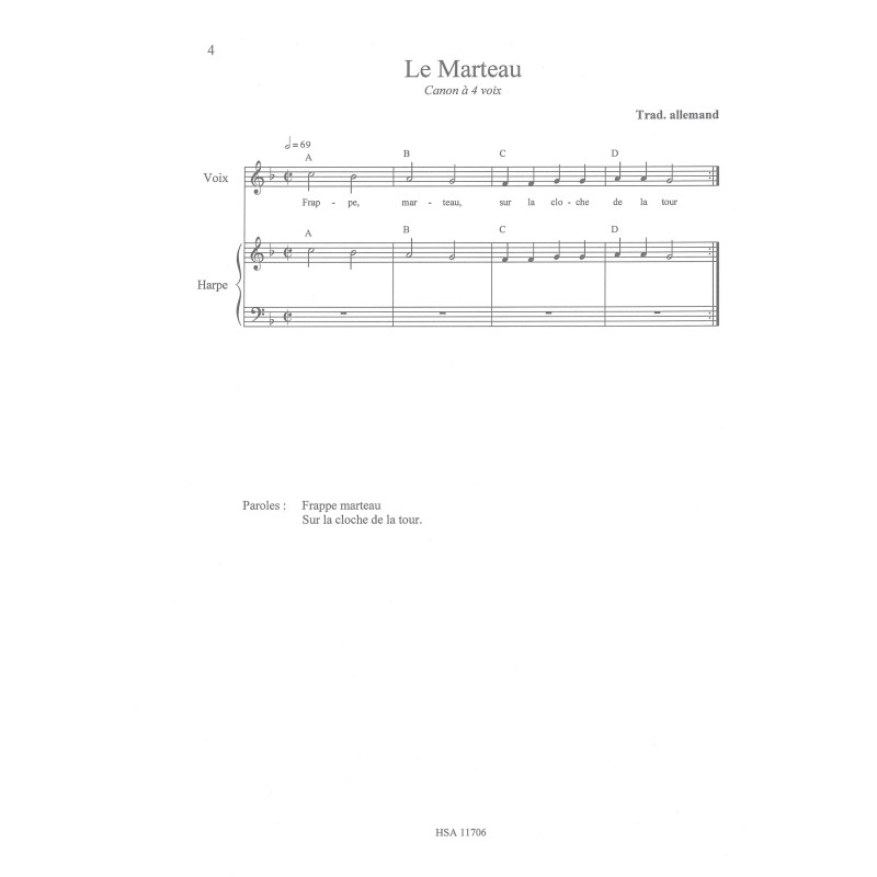 Formation : Pour voix et harpe (pour harpe à leviers)