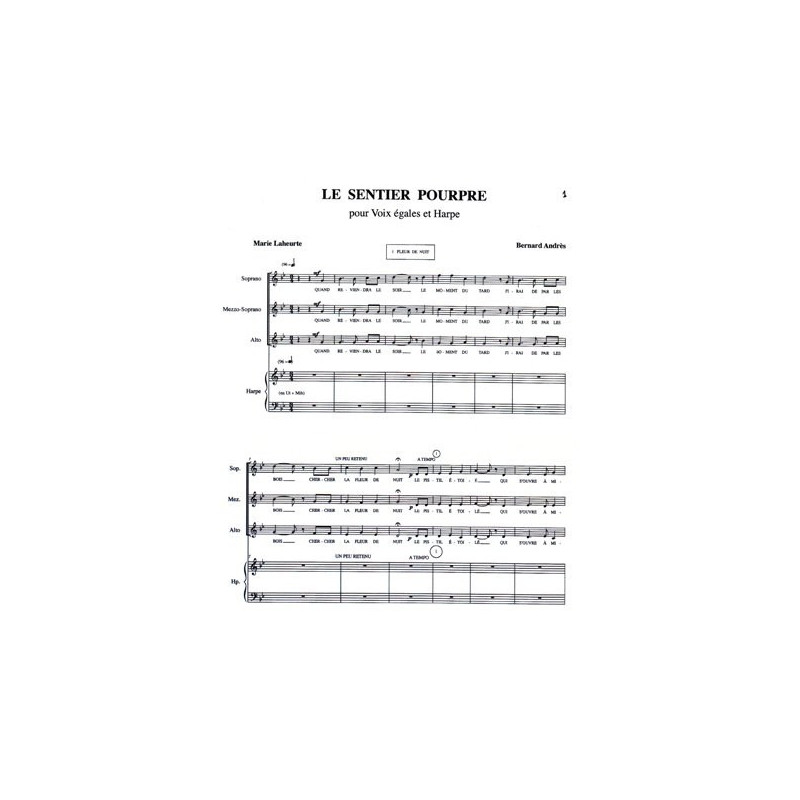 Formation : pour deux voix, alto et harpe (pour soprano et mezzo-soprano)