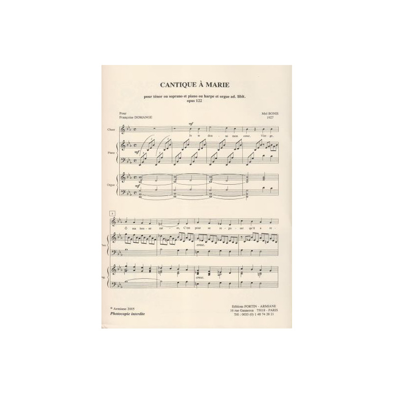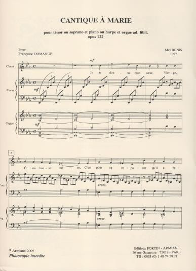 Formation : Pour voix et harpe (pour ténor ou soprano et harpe ou piano)