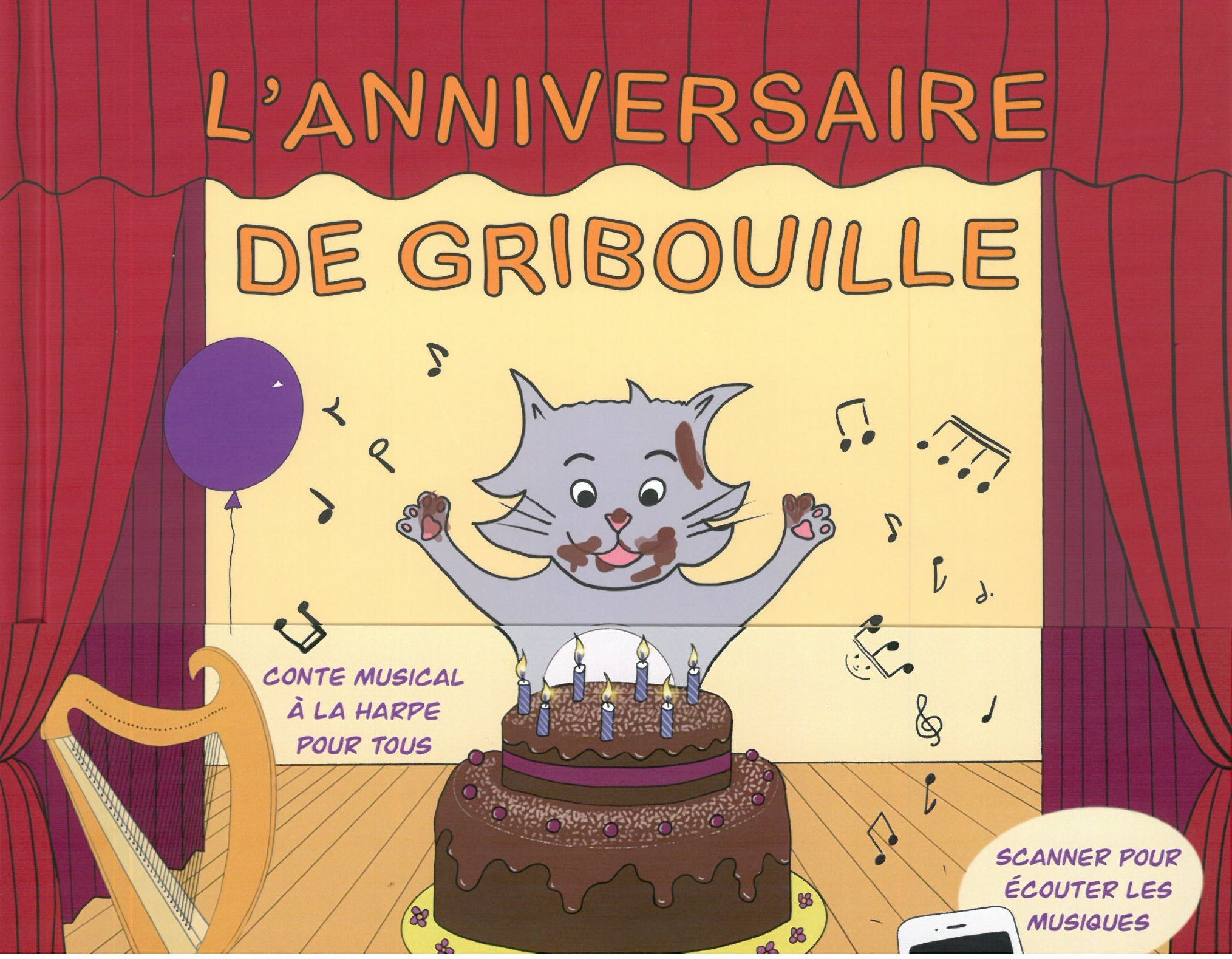 Conte musical illustré avec QR Codes pour écouter les musiques et avec partitions intégrées aux dessins.