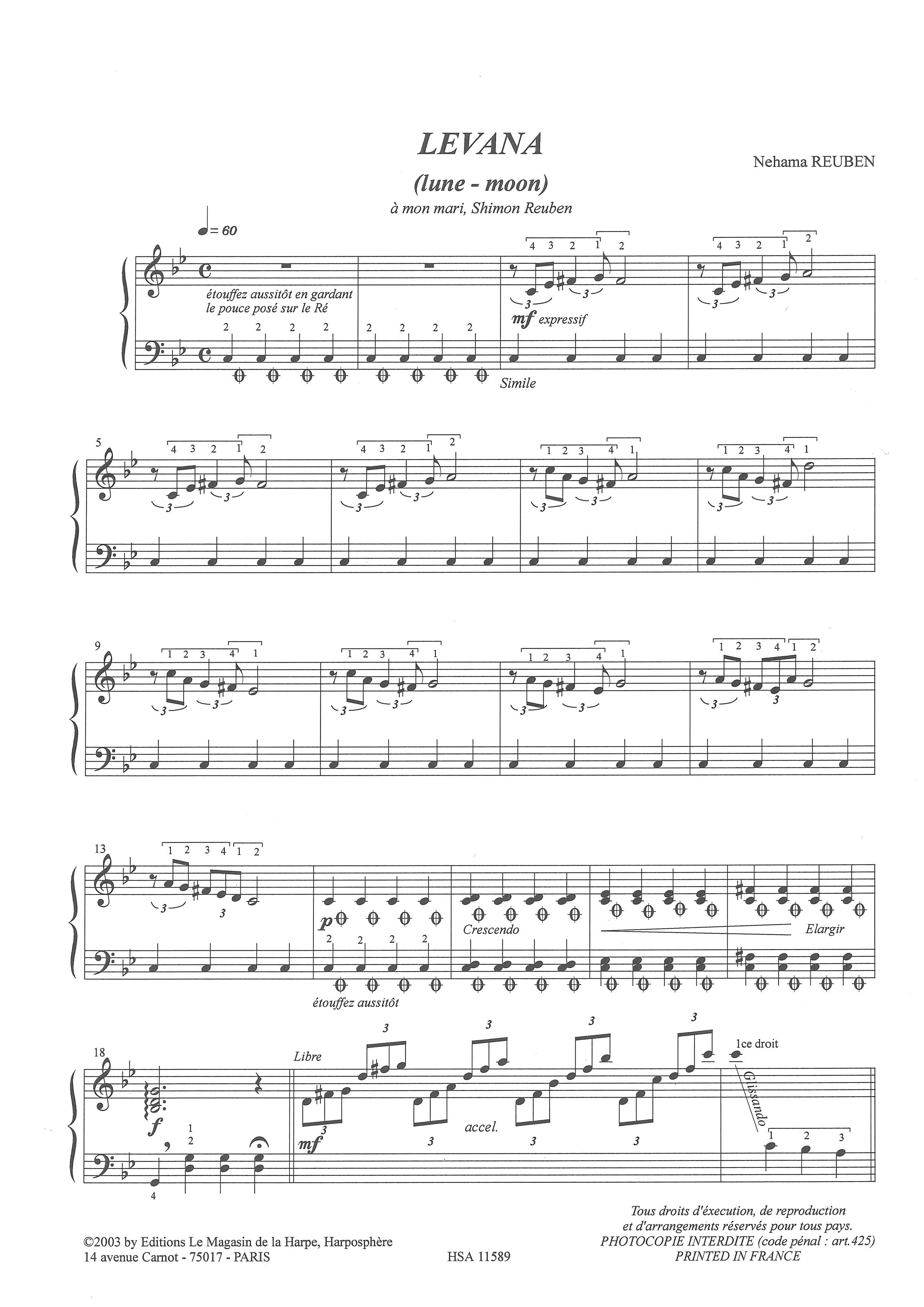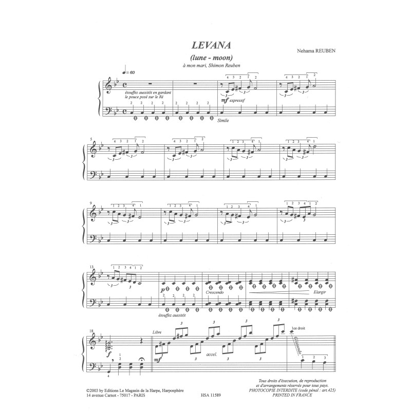 Formation : Pour harpe seule (pour harpe à pédales ou harpe à leviers)