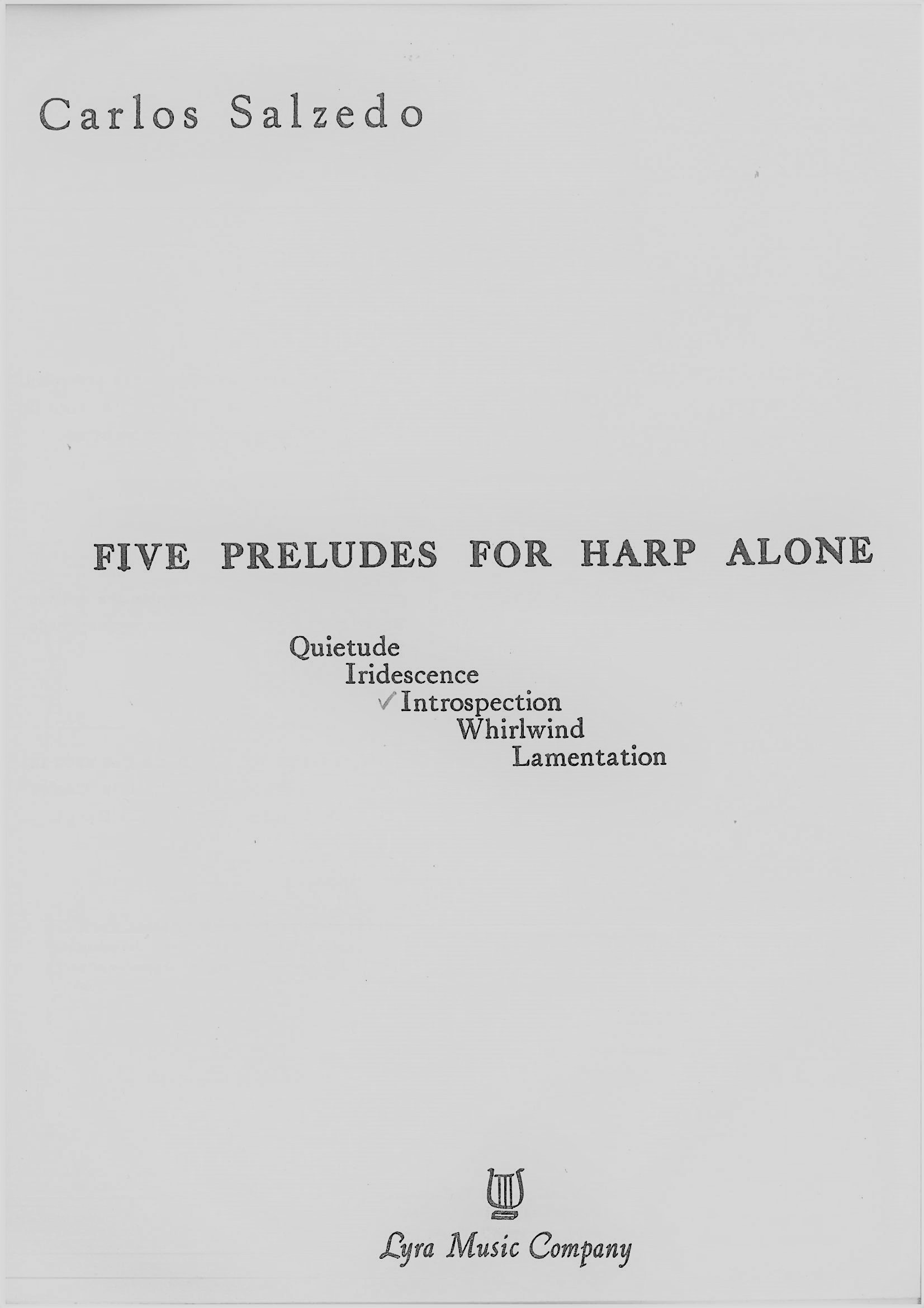 Salzedo Carlos - Five preludes for harp alone - Introspection
