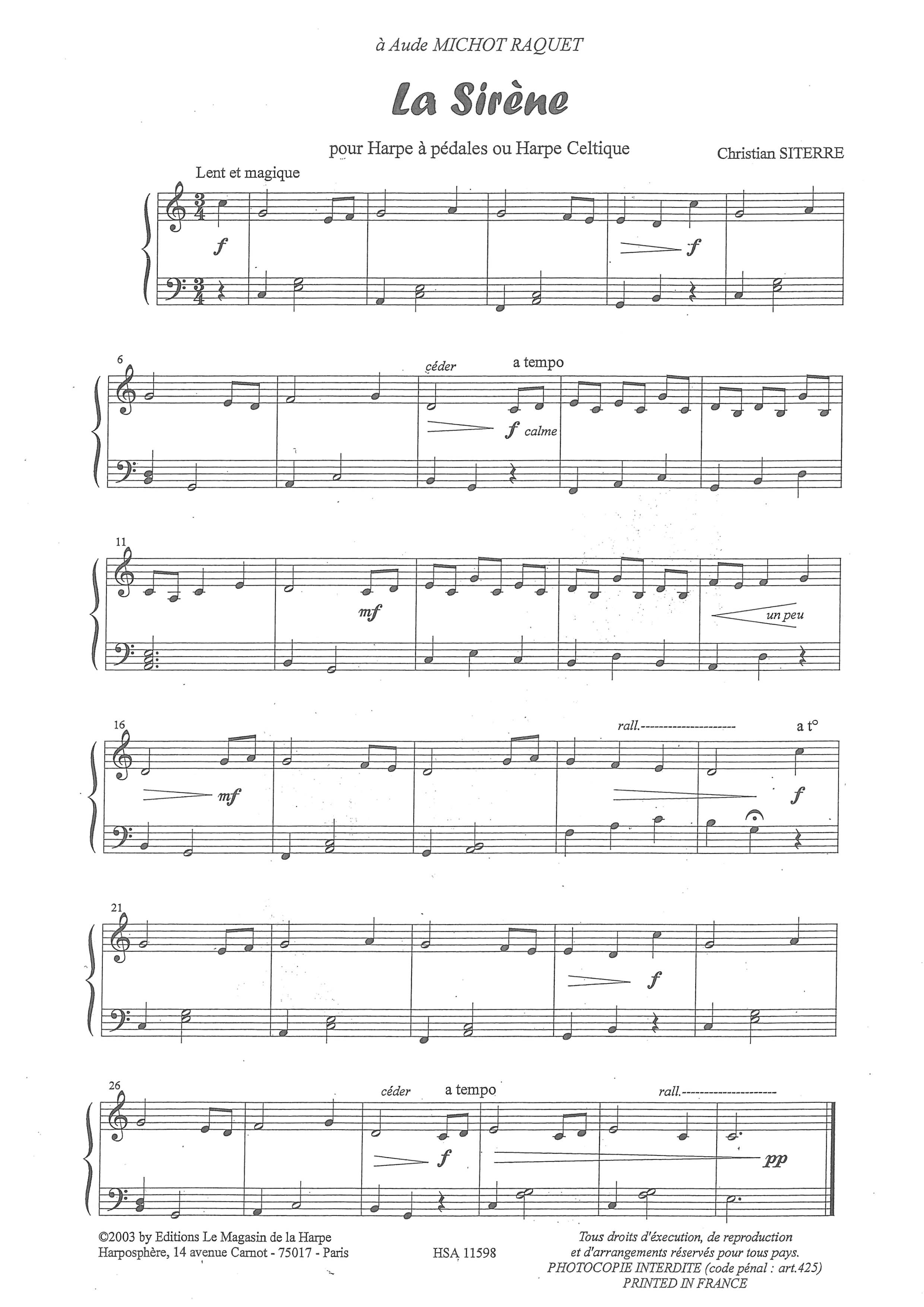 Formation : Pour harpe seule (pour harpe à pédales ou harpe à leviers)