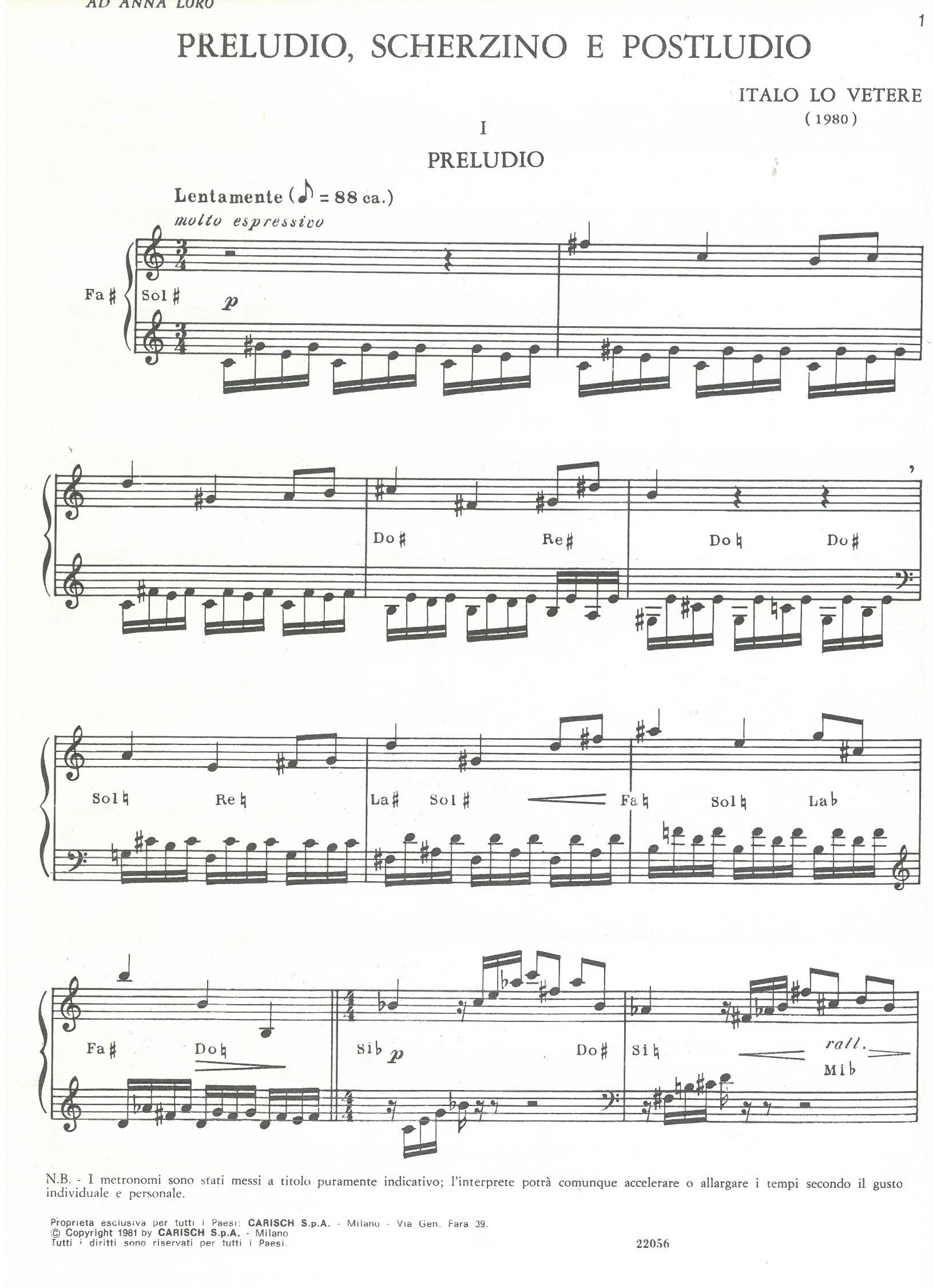 Lo Vetere Italo - Preludio, scherzino e postludo