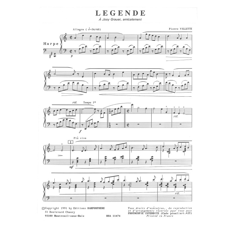 Formation : Pour harpe seule (pour harpe à pédales ou harpe à leviers ou piano)