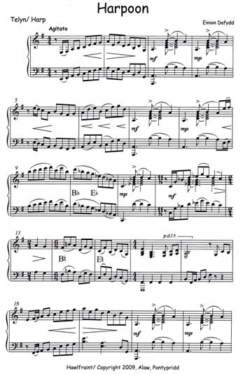 The harpoon of the title is an emotional harpoon wich is portrayed in the minor seventh chords with suspension - first heard first in bar 3. The overall mood of the piece is one of agitation. The sections starting at bar 30 and 47 hint at more positive sentiments but soon to succumb to an increasing sence of frustration.