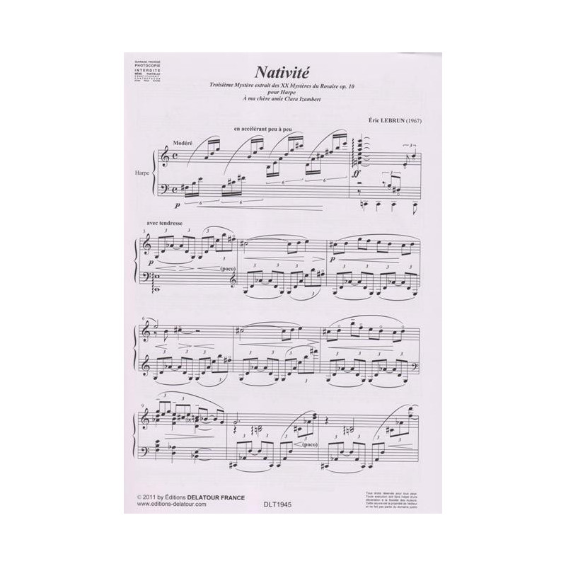 Formation : Pour harpe seul et pour violon, violoncelle, harpe et orgue