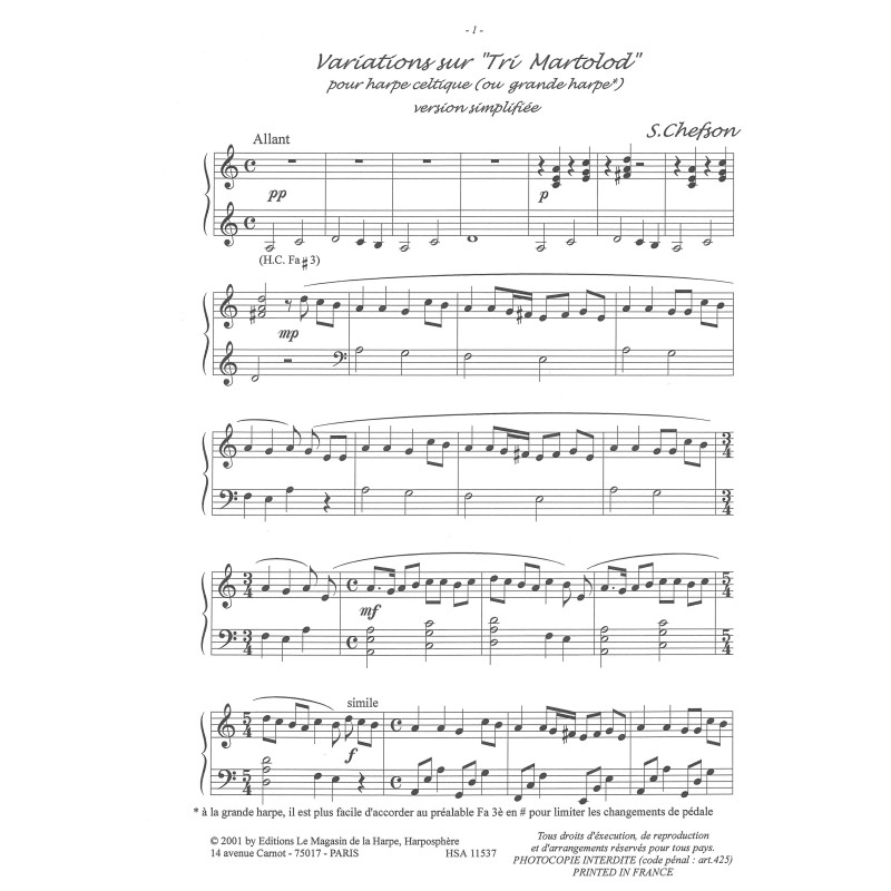 Formation : Pour harpe seule (pour harpe à pédales ou harpe à leviers)