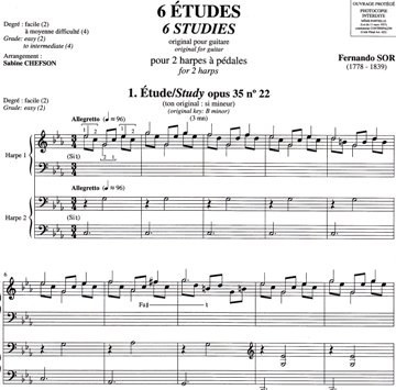 Sor Fernando - 6 études pour 2 harpes à pédales