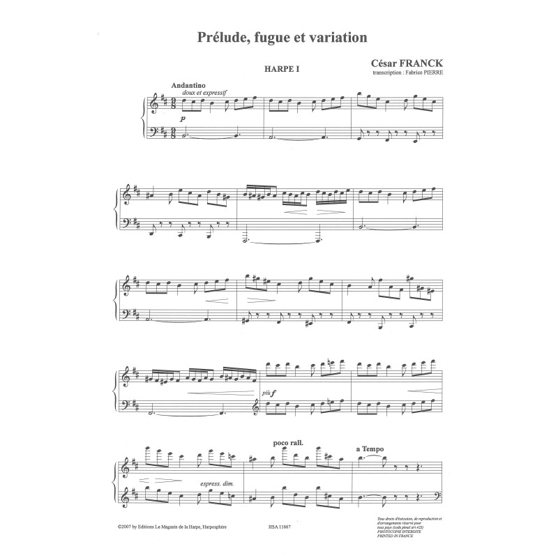 Franck César - Prélude, fugue et variation (Pierre Fabrice)