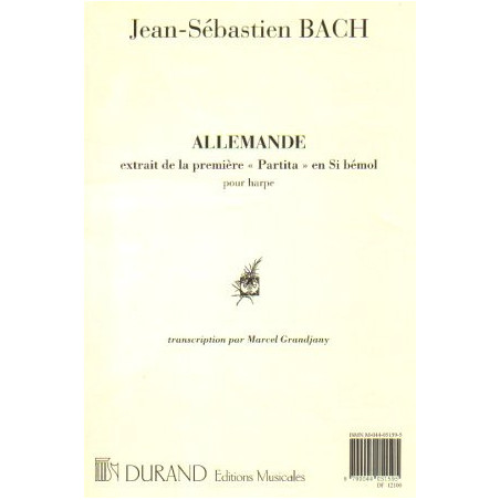 Bach Johann Sebastian - Allemande de la première Partita en si b (Grandjany Marcel)