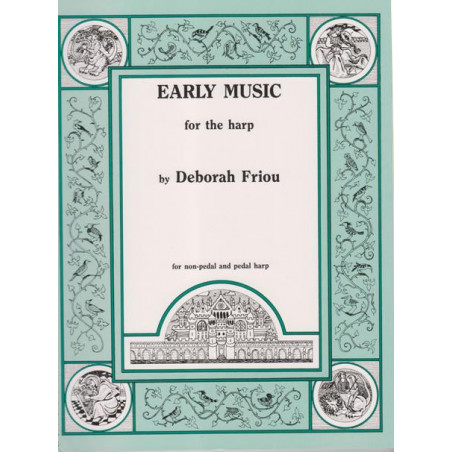 The Early Music for the Harp book is a collection of early music arranged by Deborah Friou. It contains over 40 songs and dances from the medieval period. This is a great book for lovers of early music and for those wishing to add variety to their repertoire. The arrangements vary from easy intermediate to advanced, with fingerings. In the key of C or 1 sharp. 80 pages spiral-bound.