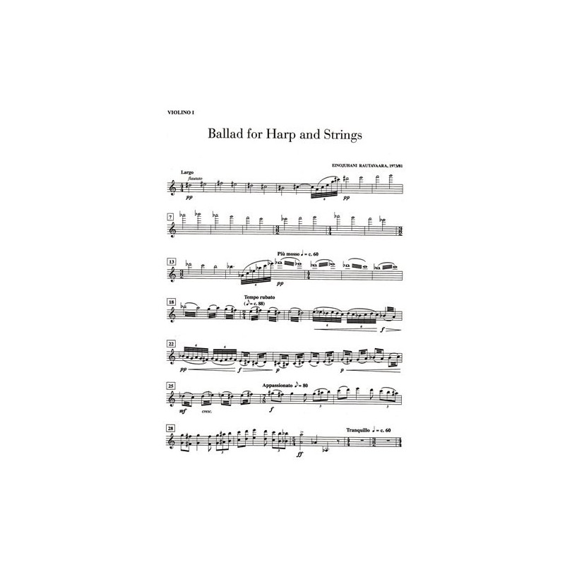 Rautavaara Einojuhani - Ballad for Harp and Strings (Harpe, 2 violons, Alto, violoncelle et contrebasse) String parts